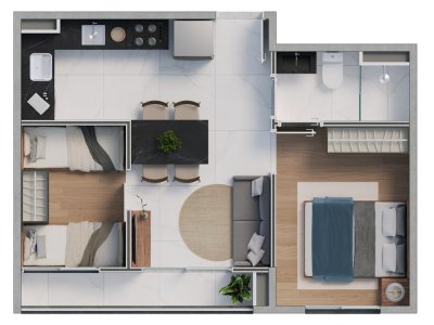 2 quartos 1 banh. 1 vagas 50 m²