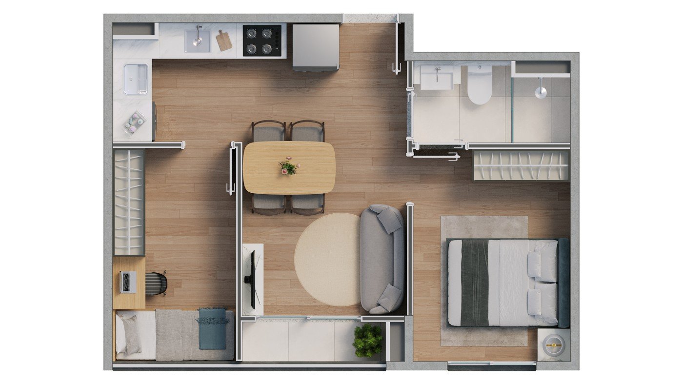 O Alma Carioca Residencial traz o conceito de Smart Apê para o coração do Valqueire. Projetado para quem busca praticidade sem abrir mão do conforto, nossas unidades de 2 quartos contam com diferenciais como fechadura digital e arquitetura inteligente. Aqui, sua família desfruta de um verdadeiro clube particular com lazer completo: piscina, academia, espaço gourmet e muito mais. Tudo isso com a segurança de um condomínio fechado e as facilidades de financiamento do programa Minha Casa Minha Vida. Venha descobrir como é viver com alma e tecnologia!
